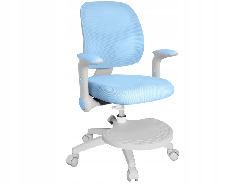 Podnóżek ułatwia przyjęcie ergonomicznej pozycji podczas siedzenia i zapobiega męczeniu się nóg. Regulacja góra – dół umożliwia dopasowanie krzesła obrotowego do wzrostu, gwarantując dziecku stabilne podparcie.
