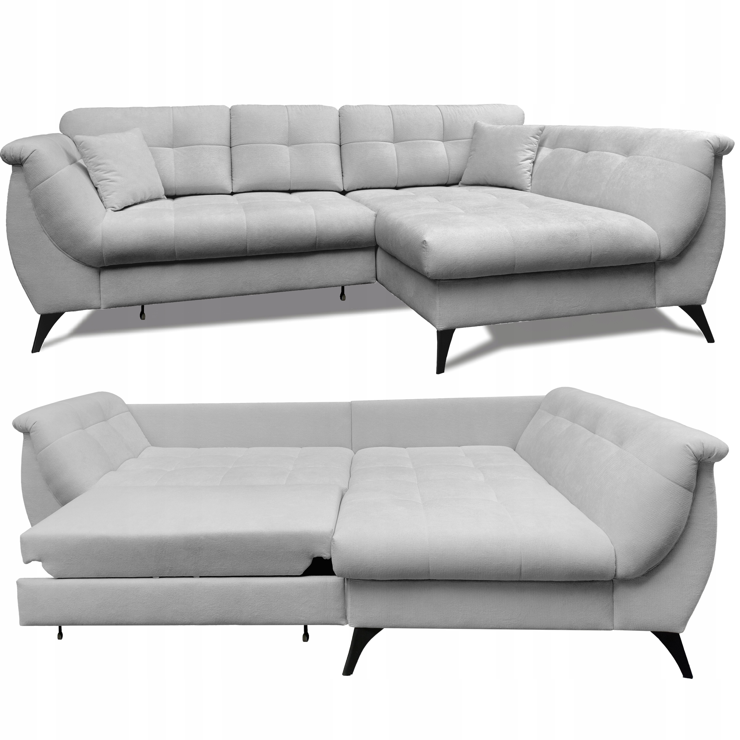 Wygodny narożnik skandynawski w literę L z funkcją spania, rogówka o nowoczesnym wyglądzie z pojemnikiem na pościel – MONARI – szary – RUN AGAIN 80