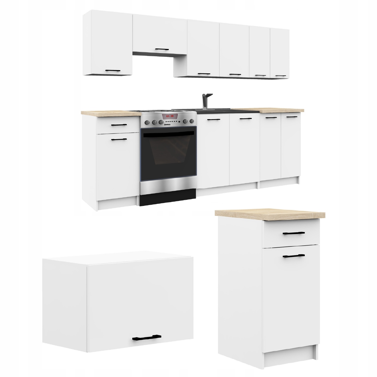 Zestaw mebli kuchennych Oliwia 240 cm szafki kuchenne z blatem Biały